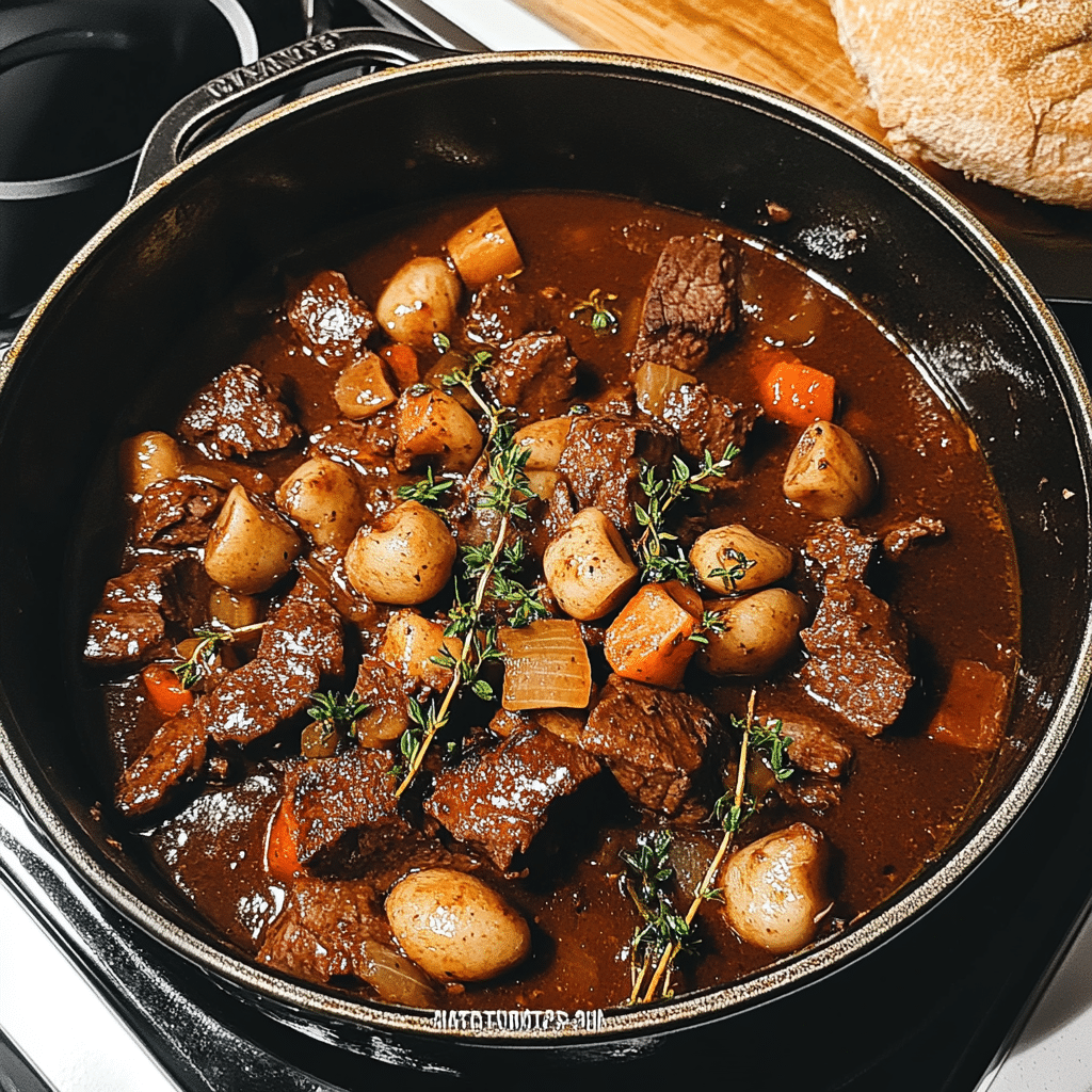 - Herbs and Spices: The dried thyme, rosemary, and bay leaf provide that familiar herby richness that is characteristic of Beef Bourguignon.