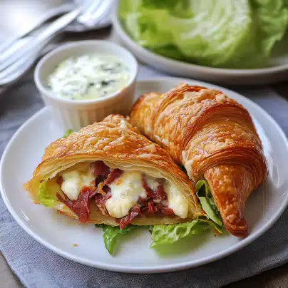 These croissants are perfect for a light lunch. You can serve them alongside a simple green salad or a side of roasted vegetables to make a well-rounded meal.