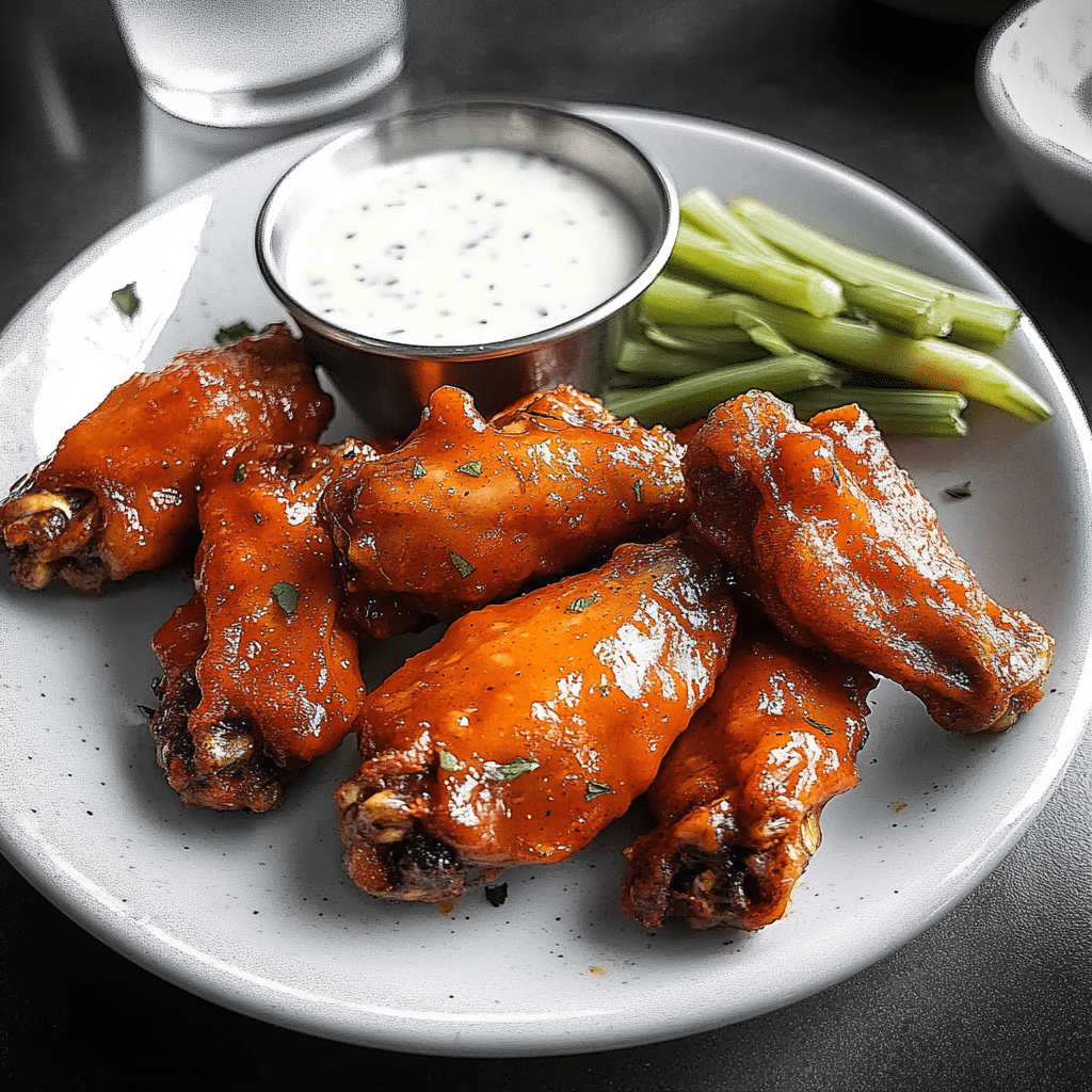 - Garnish and Serve: Arrange the wings on a serving platter. Garnish with freshly chopped parsley or celery sticks for a refreshing contrast to the heat of the wings. Serve with a side of ranch or blue cheese dressing for dipping.