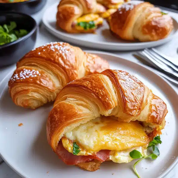 I first discovered this combo on a lazy Saturday morning when I was craving something hearty but didn’t feel like going to a café. I had croissants left over from the night before, so I decided to get creative. And oh my goodness—what started as a “throw together” breakfast quickly became my go-to for lazy mornings. The flaky croissant is the star here, but the creamy scrambled eggs, crispy bacon, and gooey cheese create the most mouthwatering bite. Trust me, once you try this, you’ll wonder why you didn’t think of it sooner.