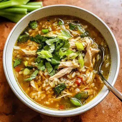 - Serve: Ladle the soup into bowls, making sure to distribute the chicken, rice, and broth evenly. Garnish with fresh cilantro and a squeeze of lemon juice for a burst of freshness. If you like a spicy kick, sprinkle some red chili flakes on top.