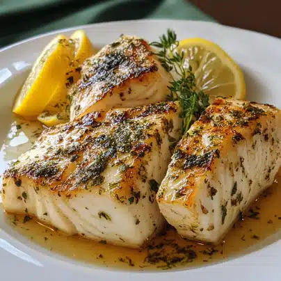 Grilled Lemon Herb Halibut is a delicious and healthy dish that combines the delicate flavors of halibut with the freshness of lemon and the richness of aromatic herbs. This recipe provides a simple yet elegant way to prepare halibut, making it a perfect choice for a light dinner, a summer barbecue, or any occasion where you want to serve something impressive without too much effort. The zesty lemon marinade, combined with a variety of herbs like thyme, rosemary, and parsley, enhances the natural taste of the fish, making every bite refreshing and satisfying.