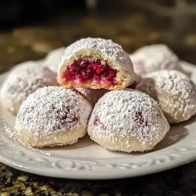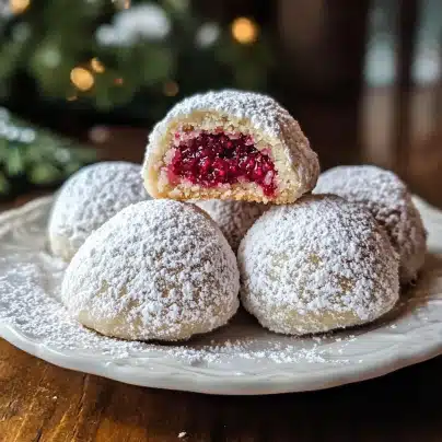 Raspberry Filled Almond Snowball Cookies are a delightful twist on a classic holiday treat. The combination of almond dough, raspberry filling, and snowy powdered sugar coating creates a perfect balance of textures and flavors. Whether you’re baking for a special occasion, a holiday celebration, or simply indulging in something sweet, these cookies are sure to impress everyone who tries them. Easy to make, customizable, and irresistibly delicious, they’re a perfect addition to your baking repertoire. Try them today and enjoy the sweet, nutty goodness in every bite!