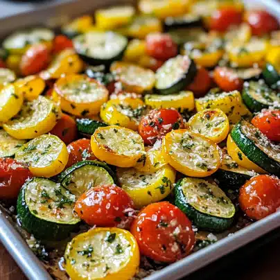 Roasted Garlic-Parmesan Zucchini Squash and Tomatoes is a simple yet flavorful side dish that’s perfect for any occasion. The combination of fresh vegetables, aromatic garlic, and Parmesan cheese creates a savory, satisfying side that complements a variety of main courses. Whether you’re serving it with grilled meats, pasta, or as part of a vegetarian meal, this dish will delight your taste buds. With its healthful ingredients and easy preparation, it’s a side dish you’ll want to make again and again. Try it today and enjoy the perfect balance of flavor, nutrition, and convenience.