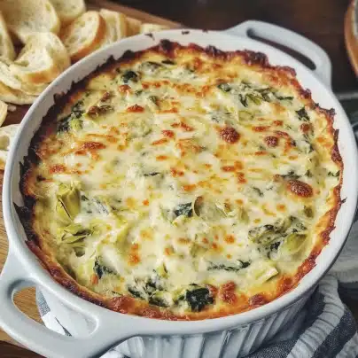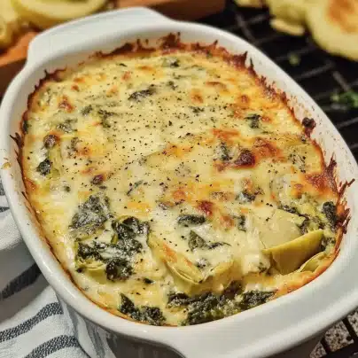 Spinach Artichoke Dip is a delicious, creamy appetizer that’s sure to impress at any event. With its rich, cheesy base, complemented by the savory flavor of spinach and artichokes, this dish is a crowd-pleaser that can be customized to suit different tastes and dietary needs. Whether you’re preparing it for a special occasion or a casual get-together, this dip will always be a favorite. Enjoy every creamy bite, and don’t forget to share it with your friends and family!