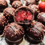 Strawberry Covered Dark Chocolate Truffles are a luxurious and indulgent dessert that marries the rich, velvety taste of dark chocolate with the fresh, vibrant sweetness of strawberries. These truffles are smooth, melt-in-your-mouth treats that will leave anyone with a sweet tooth wanting more. The combination of strawberry flavor and the intense bitterness of dark chocolate makes these truffles an elegant and irresistible treat perfect for any occasion. Whether you’re looking for a romantic dessert for a special evening, a gift to impress, or a delightful snack to share with friends, Strawberry Covered Dark Chocolate Truffles are the perfect choice. This recipe is simple to make and can be customized to suit your personal taste.