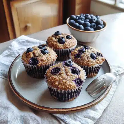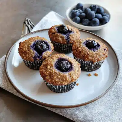 These muffins are a quick and healthy breakfast option. Pair them with a smoothie or a glass of fresh juice for a balanced start to your day. The blueberries provide antioxidants, while the flaxseeds offer omega-3s and fiber.